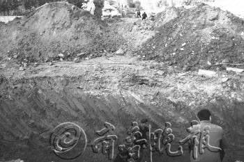 11月3日,在天衢东路北侧通往德州市特殊教育学校的路口,铺设供暖管道的施工人员正在挖掘管槽,紧张施工。 本报记者 王小会 摄