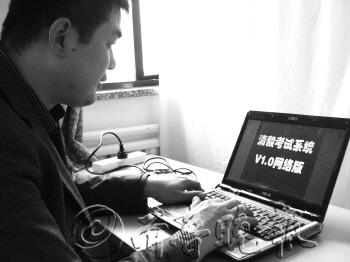 | 朱清毅展示自己发明的“盲人考试系统”。 本报记者 李楠楠 摄 |