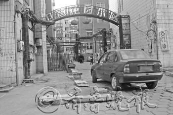 | 停在门口的红色小轿车,堵住了进出小区的唯一通道。 本报记者 窦晴 摄 |