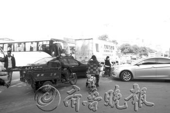 6日,在火车站前的马路上,由于站前广场施工和车辆随意占道,致使道路拥堵不堪,车辆行驶缓慢。 本报记者 马志勇 摄