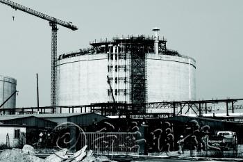 | 山东液化天然气(LNG)项目一期工程每个储罐可存储16万立方米液化天然气。 |  | 中石化山东LNG项目一期管网。 制图 刘宾 |