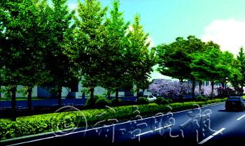 | 重庆路中分带端头效果图。 |  | 重庆路中分带效果图。 |