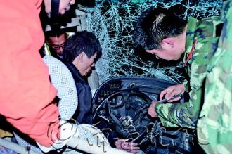 | 特勤中队消防官兵破拆方向盘,救出被卡的鲁师傅。通讯员 成志朋 摄 |