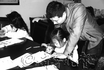王厚良在教孩子们书法。 本报记者 赵发宁 摄
