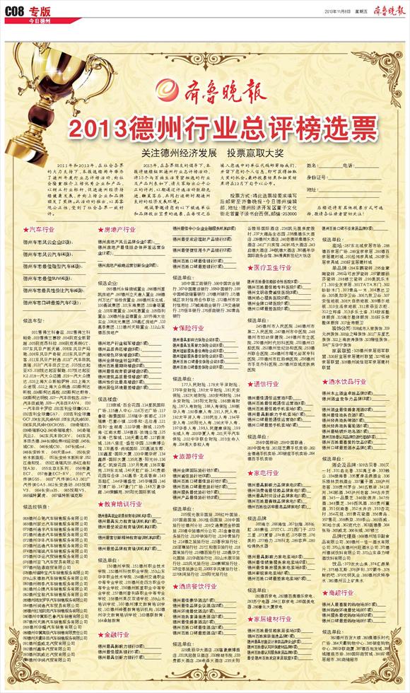2013德州行业总评榜选票