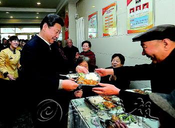 | ▼7月21日至23日,习近平在湖北调研全面深化改革问题和当前经济运行情况。这是21日上午,习近平冒雨来到武汉新港阳逻集装箱港区考察。 |  | ▲9月30日,中共中央政治局在北京中关村以实施创新驱动发展战略为题举行第九次集体学习。这是习近平、李克强、张德江、俞正声、刘云山、王岐山、张高丽等参观中关村科技创新企业、科研单位重要创新成果后,边交谈边走向会场。 |  | ▲2月4日,习近平在甘肃兰州考察时为七旬老人端饭。 |  | ▲1月5日,李克强与“最美乡村医生”入围人选座谈时,礼请乡村医生周月华先行。 |  | ◥8月17日,甘肃岷县漳县地震灾区。这是李克强来到海拔2700多米的岷县重灾区梅川镇永光村看望受灾群众。 |  | ▲10月31日,李克强在北京主持召开经济形势座谈会,听取专家学者和企业负责人对当前经济形势和今后经济工作的意见和建议。这是李克强与民营企业家马云(左一)、李书福(左二)交谈。 |