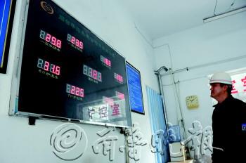 | 8日,华阳热电工作人员在查看供热显示板上的炉水温度。本报记者 韩逸 摄 |