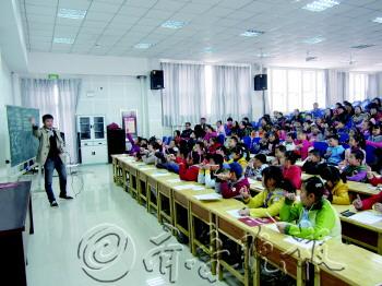 近日,本报100多名小记者在烟台开发区金城小学多媒体教室接受了采访主持培训,由本报邀请的开发区电视台主持人刘海海为小记者们上了一堂生动的采访主持培训课。 “在坐的小记者们如果想当主持人,首先做到的是普通话要说标准,而练习普通话最基本的便是声调练习……”课程一开始,刘老师便向小记者们讲解了如何能成为一名优秀的主持人。随后,刘老师便开始利用手势、图画、词语等方式教小记者们如何掌握普通话的声调。 “这个声调练习很简单啊,就和咱们刚上小学的时候学的拼音的音调一样啊,这有什么可练的。”就在刘老师讲解完之后,有的小记者小声地向旁边的同学说道。然而当小记者们跟着老师读一些词语的时候才发现,看起来简单的音调练习,他们却频频出错,尤其是在上声(同拼音三声)练习上,很多小记者收声不到位,拖腔拉调造成发音不标准。“原来声调发音练习也不简单啊,看来以后学习的时候要多注意了。”小记者在学习之余悄悄感叹道。 刘老师在教完声调基础之后,又开始教小记者们练习一些绕口令来巩固声调练习,学着这些拗口的绕口令,小记者们的发音逐渐有了改善。之后,刘老师又开始指导小记者们现场进行新闻播报,让小记者们领略到了新闻联播中播报新闻的感觉。最后,刘老师又与小记者们就如何采访进行了现场交流,给予小记者们充分的指导。 “这堂课让我学到了好多,以后我要多练习普通话的声调发音,学学朗诵,长大后也当一名主持人!”开发区实验小学的小记者吴春瑶高兴地向记者说道。活动结束后,很多小记者围着刘海海老师请教关于主持人的问题,小记者们对当一名主持人充满了好奇,也充满了兴趣。