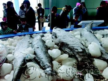 本报11月10日讯(记者 刘蒙蒙 张浩)10日,为期3天的中国(潍坊)食品博览会在富华国际展览中心成功落幕,本次展会共吸引了545家企业参展,5万人次现场淘宝,三天完成交易额7400万元,达成协议4.59亿元。 10日,在展览会现场,不少展区摆出一些特色产品,引得市民纷纷驻足拍照留念。在一楼展厅几条大鱼吸引了众人的目光。冷冻的洋鱼、金枪鱼、龙胆石斑、龙文鱼、鲨鱼等很难在超市中看到,其中最大的洋鱼体重高达169公斤,一条龙文鱼体重也有136公斤。这些大鱼都是从福建运过来的,让潍坊市民一睹风采。 “第一次见这么大的鱼,在超市里面根本就看不到,大开眼界。”来自高新区的李先生边给孩子照相留念边说,他从朋友那里听说,展览会上有条大鱼,李先生赶紧带着孩子来看看,果然名副其实。 在一些特色食品展区,商家为了吸引顾客,将做好的美食放进盘子里,市民可以免费品尝。四川腊肠摊位上,老板现场用微波炉煮腊肠,市民被浓郁的香味吸引过来,用牙签叉起肉放到嘴里尝尝鲜。“很好吃,四川腊肠很出名。”李女士说,李女士说她曾在四川上的大学,上大学的时候经常和同学到路边的小吃店吃饭,腊肠是必点之一。“毕业五年了,终于又吃到正宗的了。”李女士特意买了10斤腊肠,打算拿回家让亲戚也尝尝鲜。 今年65岁的李女士逛完展会,买了不少东西,袋子里面有台湾枣,台湾花生还有鱿鱼片。“价格便宜,买二送一,很实惠。”李阿姨说,超市里面大多是本地的产品,没有见过台湾产的红枣和花生。