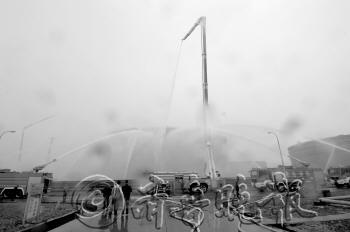 9日上午,在中石化青岛炼油化工有限公司,市消防支队开展大型石油化工企业火灾扑救实战演练,演练中首次使用了远程供水系统,还有两辆登高平台消防车亮相。其中,西海岸最高的登高平台消防车,其臂展可达68米,另一辆登高平台消防车最大攀升高度为40米。