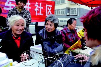 工作人员给居民检查心脑血管状况。 本报记者 王鸿哲 摄