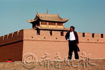 ▲二O一三年春,作者在嘉峪关创作《关河梦断大草五屏》。