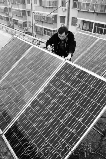 在楼顶建一个小型光伏电站,既能实现供电自给自足,还能赚钱。这是王庆旺多年来的梦想。如今,他梦想成真,建成了聊城首家并网发电的家庭光伏电站。 王庆旺的家庭光伏电站在阳谷县狮子楼街道办候庄村一座普通的三层楼顶上,由12块光伏太阳能电池板、一个逆变器、一个电能表及开关、电线等组件组成,占地约20平方米,总造价3万元左右。电站装机容量3千瓦,预计年发电4000千瓦时,王庆旺的家庭用电量一般在每天4度左右,多余电量通过计量电表输送到国家电网。根据目前的国家政策,以每千瓦0.47元的卖电所得加上每发1千瓦时电国家0.42元的补助算,10年左右就能收回设备成本,而整个家庭光伏电站系统的寿命在25年以上,剩下的十几年就是纯受益。 经过一个月的试运行,王庆旺的家庭光伏电站已经顺利通过验收,并入国家电网,这标志着聊城首家自建光伏发电并网成功。“我建这个电站的出发点,是想把空闲的楼顶利用起来,普及到现在的普通居民家庭。光伏电站每发一度电,就可节约一度电的煤耗,对环保十分有益。”王庆旺说,这种发电方式,不仅可以完全实现供电的自给自足,而且是真正的清洁能源,不会有任何污染。文/片 本报记者 李军