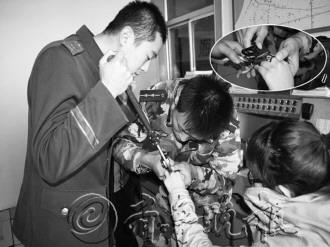 11日上午,一女子在朋友陪同下到高区消防吉林路中队求助,女子的左手中指被一金属戒指牢牢卡住,手指已变得红肿。征得女子同意,消防员动用扁嘴钳、断电钳剪断指环,5分钟后帮女子解困。 本报记者 王震 通讯员 赵璠 胡增华 摄影报道