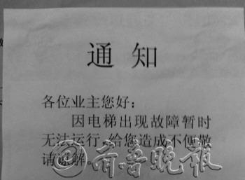本报11月13日讯(记者 赵磊 王琳)半个月前,名都百盛园小区打压试水,结果两个单元内的高层上均少了一个阀门。结果,水将两部电梯泡坏,至今,物业和热力公司都未进行维修。11月13日,无奈的业主准备自己凑钱修电梯。 11月13日上午,记者来到了位于胜利西街的名都百盛园小区。家住一号楼的张先生告诉记者,就在10月30日那天,热力公司打压试水。结果,15楼楼道里的一个管道阀门没有了,导致水从此处流出,将相隔不到两米的电梯泡坏。 “当时电梯还在运行,进了水之后就把线路板什么的烧了,幸亏当时电梯里面没有人。”张先生说,原本单元里的住户也没太在意,觉得过几天电梯就会修好,结果半个月过去了,电梯一直没人来修。 张先生说,这个单元有16层楼,里面住着不少老人和小孩,电梯迟迟不修,对于他们的出行非常不便。而借用2单元的电梯上楼,他们还需要走过一条楼外的消防通道。 记者看到,15楼楼道的阀门已经重新换上,但是里面仍然能看到水滴不停地滴下来。“不止我们单元,2号楼1单元电梯也坏了,也是15楼的阀门没有了。”张先生说,单元里的住户准备集体凑钱,先将这个电梯修好。但问题是,以后再出现这种问题,是不是还要他们自己拿钱呢? 随后,记者来到了百盛园物业服务中心了解情况。“电梯不是正常使用损坏,而是人为的,需要找到责任人。这件事跟五岳热力公司有关,他们打压导致的,我们老板正在跟热力公司协商。”该物业的宋经理解释说,热力公司打压前应该检查一遍所有阀门。“热力公司说是检查了,但是为什么还有没有阀门的?” 同时,宋经理称两个单元的47户业主欠了10万元的物业费未交,要是他们交了物业费,物业也可以先垫付维修费用。“也不是物业不想垫付,实在是没钱垫付。” 13日下午,记者又致电五岳热力公司,说明了情况。一名工作人员称负责人不在,她会将情况转告负责人,然后再与记者联系。截止记者发稿前,未接到热力公司的电话。对于此事的进展,本报将继续关注。