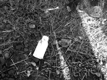 | 鱼塘内仍漂浮着一些死鱼。 |  | 塘边被丢弃的毒药瓶。 |