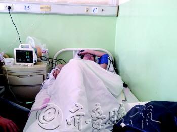 | 15日,被刺伤的“大米”还躺在医院的病床上。