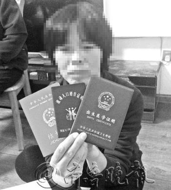 | 徐先生妻子展示准备办理居委会同意接收户口证明的材料。 |