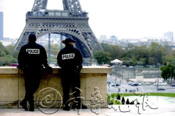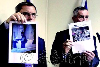 | ▲18日,两名法国警察在巴黎人权广场巡逻。 新华/法新 |  | ◤18日,巴黎警方展示监控摄像装置拍摄到的枪手离开BFM电视台总部以及在《解放报》总部附近街道行走的画面。 新华/美联 |
