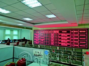 | ◥在二楼招聘大厅,大屏幕上显示着招聘信息。