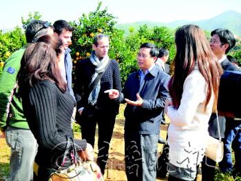 意大利皮埃蒙特大区卡内利市代表团考察会昌果业工作(图中左五为江西省会昌县果业局副局长文方华)