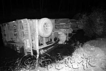 本报济宁11月19日讯(记者 张林 通讯员 陈冲) 11月18日凌晨,105国道金乡鸡黍镇段发生一起交通事故,一辆大货车追尾撞上停在路边的另一辆大货车,侧翻进路边水沟。事故造成两车不同程度受损,后车驾驶员被困车内,脚部受伤。 18日凌晨3时许,在105国道金乡鸡黍镇段,一辆重型货车与满载沙石停在路边的重型半挂车追尾。金乡公安交警大队民警赶到现场后,发现一辆重型半挂货车停在路边,车辆后部损毁严重,大量砂石倾撒在路面上。在该车不远处水沟内,另一辆大货车侧翻在水里,岸边横七竖八躺着几棵断裂的小树。 由于侧翻的货车车头凹陷,驾驶室中司机的脚被卡在方向盘和座椅之间。民警紧急救援,所幸卡位较浅,10分钟后,民警将被困司机成功救出,随即由医护人员送到医院救治。据了解,事发当时前车司机王某因连续驾车较长时间后有些疲倦,便打开警示灯靠边停车歇息,没想到车停了还没半小时,后方疾驰而来的货车就直接撞到了其车尾部。“速度应该很快,不然不会把车尾撞出这么大的豁口。”回想起事发情形,王某仍心有余悸。 按照相关规定,王某未按规定停车,负有部分责任,由于后车驾驶员还在医院接受治疗,此次事故具体定责还需民警勘查完现场,制作询问笔录后才能进一步确认。