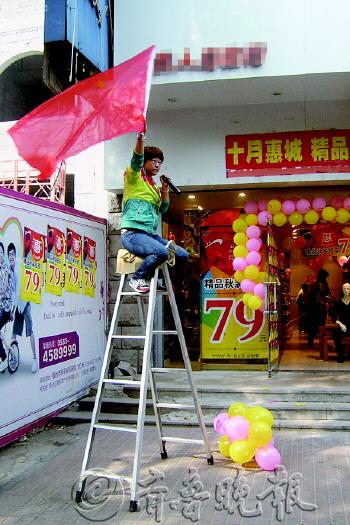 作品描述:为了招揽顾客,推销员坐在高凳子上叫卖。