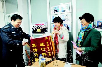 | 刘新云在本报接听热线时耐心解答读者关心的问题。 |  | 济南市公安局十几个部门的负责人一起来本报接听热线。 |  | 为感谢民警耐心周到地处理自己的报案,家住在天桥区胜利庄的居民曾宪惠特意赶到本报,为接听热线的公安局长刘新云送上了锦旗。 |
