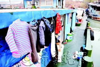 孩子太小不放心,只能带到船上 21日,微山码头边,一艘载重700吨煤炭的货轮正在为第二天的远航做着最后的准备。两岁半的一乐躺在爷爷怀里张着小手,想让不远处的妈妈抱一抱。但他的妈妈刘苗这时却顾不上儿子,她正和丈夫一起给货舱上的煤炭盖帆布,做着出航的准备。 “孩子自出生后就一直跟在船上,他年龄太小,放老家我不放心。”刘苗拢了拢头发,朝儿子的方向看了一眼,扭头继续干活。刘苗夫妻俩在运河里跑运输已经有五个年头了,2011年儿子出生,此后便一直和父母生活在船上。 “世上只有三大苦,打铁开船磨豆腐,孩子在船上也受罪了,冬天冷夏天热,但实在是没办法。”刘苗的丈夫王朝东无奈地说,现在天气渐冷,运河上又没遮没掩,寒风一吹夜里常被冻醒。“开船人都知道,船上不养老不养小,等孩子到了上学的年纪就把他送回老家。”王朝东说,现在只能是大人多留心,保护好孩子的安全。 船主孙兆杰的孩子留在微山老家上小学,寒暑假就会来到船上,跟着爸妈在运河上跑运输。“每年也就这段时间能天天见到孩子,但也没办法。”孙兆杰感觉对孩子很亏欠。“如果家里有老人,船主大多会把孩子留在家里,毕竟船上的生活对于孩子们来说太单调了。” 王朝东和孙兆杰的货轮都没有护栏和栏杆,没时间照看孩子的时候,只能给孩子套上救生衣,后面绑上一根绳子,拴在生活舱里。“我们也是整天担惊受怕,一有点空就赶紧看一眼,生怕孩子掉到水里。”刘苗告诉记者,大运河上的船员大都这样看管自己的孩子,虽然被绑在生活舱里孩子有时候会哭会闹,大人们听到心里不好受,但至少这样孩子的安全有保障。