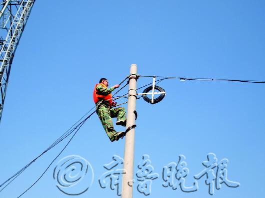 | |  | 无棣移动分公司工作人员架设传输线路。 |