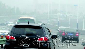 | 22日早上,济南经十路能见度很差。 本报记者 周青先 摄 |