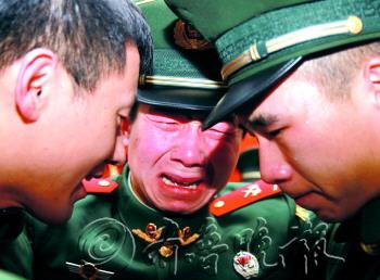 24日,在武警济南支队警营里,一批老兵经历着军旅生涯里最重要也是最伤感的时刻:向警徽告别仪式。当伴随自己多年的帽徽、领花和肩章一一摘下时,平日里坚强的武警战士几乎个个泪如雨下。 本报通讯员 曲安东 摄
