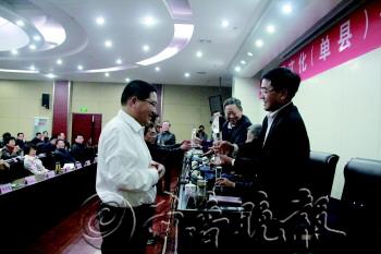 | 中国善文化(单县)研讨会上,征文筹委会向优秀文章作者进行表彰。 本报记者 李德领 摄 |