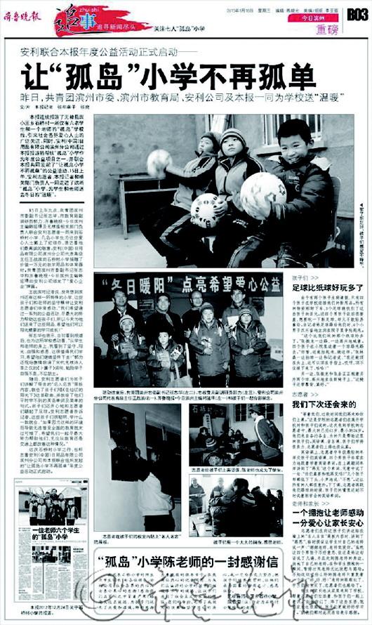 这次活动,感受很多。虽然学校里孩子不多。但他们的向往,愿望,梦想很多。对生活美好追求不比城里孩子差。这种公益活动,还有赖于大家的参与!谢谢齐鲁晚报!谢谢安利公司! (安利志愿者王新民)