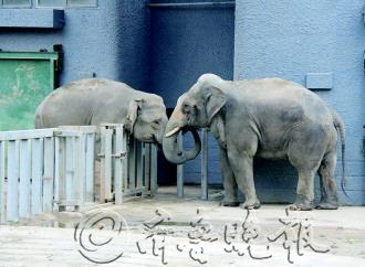 时间:2013年10月11日 自述:隔着铁栅栏也不能阻挡两只大家伙。 点评:“哈喽,亲爱的。”