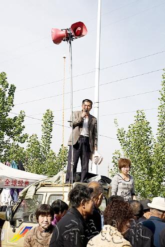 时间:2013年11月15日 自述:一老板站在高处用喇叭广播着,推销商品。 点评:“走过路过不要错过。”