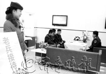 为给退伍老兵提供便捷服务,济宁汽车总站开辟了绿色通道,老兵们可优先买票、检票,同时新启用的VIP候车室也免费为退伍老兵开放。图为两位老兵在和战友告别。
