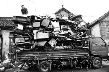 年关将近,不少家庭辞旧迎新,把废旧电器拿出来卖掉。25日,所城里一处民居附近,收废铁的师傅把废旧自行车和废旧家电装上卡车。像这种严重超载的卡车,能够装载废铁1吨左右。