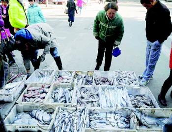 26日,在奇山路上,一处鱼摊引来市民围观。摊主王师傅说,天气越来越冷,他特意从船上拉了些小黄花、大鲅鱼、刀鱼、偏口鱼来到小区里卖,因为很多市民这个季节都会腌制咸鱼,小区里晒鱼也会成为一道独特的街景。