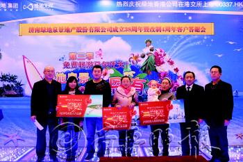 11月20日晚七点,济南绿地泉景地产股份有限公司为答谢广大新、老业主,在泉景鸿园商务大厦21层举办了第三季“绿地泉景感恩有您”大型抽奖活动。公司监事会主席于洪星、财务总监王可伟,五十组业主代表和网络、报纸、电视台等相关媒体出席本次活动。自第三季活动启动以来,广大业主积极响应、热情参与,截至本月16日,共有3351位业主参与本次活动,实际有效票数3220张。20日晚,在现场100多位业主代表、嘉宾以及媒体的共同见证下,一等奖马尔代夫双人六日游三组获奖名单、二等奖时尚港澳双人五日游六组获奖名单、三等奖沪苏杭双人高铁四日游九组获奖名单一一揭晓。