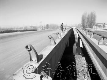 | 被严重损坏的大桥护栏。 本报记者 王瑞超 摄 |