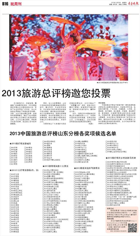 2013中国旅游总评榜山东分榜各奖项候选名单