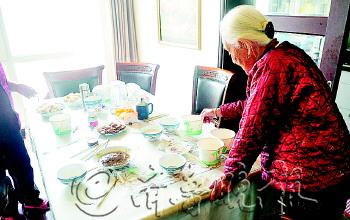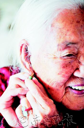 文/片 本报记者 邱志强 喜欢穿漂亮衣服、爱佩戴珍珠玛瑙首饰、出门前要花时间打扮一番……这可不是二十来岁的大姑娘,而是住在青岛市市北区鲁信长春花园的于显华老人。 于显华老人是土生土长的青岛人,现在和女儿住在一起,看到记者的相机,老人有些不好意思地说,“让你跑这么远来给我们家照相,真辛苦你了。”然后就起身去换衣服。十分钟后,老人戴着自己最心爱的项链,满面笑容地出现在大家面前。孩子们都开玩笑说,“这样一打扮,仿佛又年轻了二十岁。”老人听后开心地笑着,还自嘲道:“老了老了,不比年轻时候了。” 每天起床后,于显华自己收拾床铺、打扫房间,她不允许孩子们插手帮忙。收拾妥当后,就开始认真梳洗,老人端坐的姿态、梳头的动作,一招一式尽显大家闺秀风采。老人的孩子们说,母亲年轻时就很漂亮,在当地是出了名的美女。 洗漱完毕出门前,于显华还要认真整理服装和发型。整齐梳向脑后的齐耳银丝,干净的面庞,白齿红唇。虽然年近百岁,但举手投足间仍掩盖不住她端庄的气质。女儿们说在小区里,附近的老人都知道老母亲爱美,“我妈每次出门遇到熟人,大家都会夸她打扮得很漂亮,她听了以后就格外高兴。” 现在每逢年节,儿孙都从外地回到老家团聚,孩子们都会给老人带来各种礼物。而老人最喜欢的就是各种漂亮的衣服,每个孩子家里都存有几件老人喜欢的衣服。 老人的女儿们说:“和同龄人比起来,老母亲更爱美,更注重生活质量,这可能也是她健康长寿的最大原因吧。”