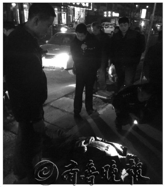 本报12月4日讯(记者 程凌润) 4日晚19时10分许,莱城区育才街某饭店附近,一名中年男子昏睡在路边,市民程先生担心男子发生意外,就拨打110报警,民警和120急救人员到达现场后,男子被送往医院。 “路边上躺着一个人,不会出什么事了吧?”4日晚,程先生与同事吃完晚饭途经育才街时,发现一名中年男子横躺在路边,该男子身穿一件夹克和一个牛仔裤,两手合拢放在腹部,左腿蜷曲,身上还有一股酒味。由于程先生询问男子的时候,男子没有任何回应,他就拨打110报警。 没过多久,这名男子的手和脚都动了下,程先生这才放心,这时围观的市民也越来越多,一位好心的女士还拿了一摞纸来想垫在男子头下,其余围观者由于不知道如何抢救,都不敢碰这名男子。据一名现场目击者介绍,男子身上没有外伤,他在横躺路边前,曾蹲在马路边。“身上能闻到酒味,应该是喝醉了!”市民张女士这样猜测。 程先生报警7分钟后,花园派出所民警来到现场。“你怎么会躺在这里?”民警一边拿着录像机进行现场取证,一边询问男子情况,可是男子的回答含糊不清,民警刚问两句,男子又睡着了。120急救人员到达现场后,男子被送往医院救治, 经民警调查,男子身上仅有一部已经欠费的手机,没有身份证和钱包,尚不能判断男子是否是因为喝醉昏睡街头。目前,民警已经通过手机通讯录联系到了男子家人,男子家人已经赶往医院。 夜新闻 民警到达现场后,询问男子的情况。 记者 程凌润 摄
