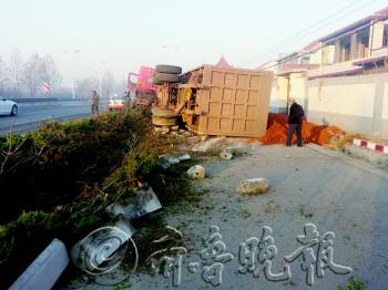 货车撞向民房,现场一片狼藉。 本报通讯员 彭俊强 摄