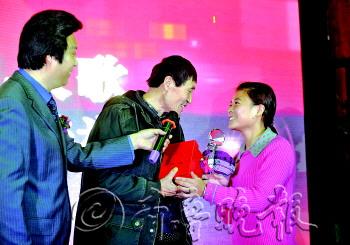 | 受到烟大保洁员吃学生剩饭的影响,山东协和学院学生代表给吴明华送上用下脚料制作的布偶。 |