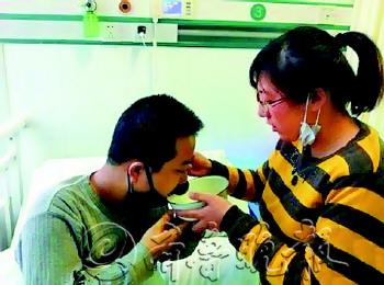 | 邹文君不分昼夜地照顾戴广才。(资料片) |