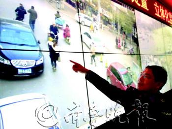 | 天网监控视频,将偷完包离开的李依依拍个正着。 张林 摄 |  | 民警在看守所对犯罪嫌疑人进行讯问。张林 摄 |