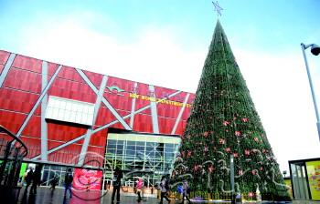 圣诞节临近,不少商超在门前摆起圣诞树,营造节日气氛。近日,新世界百货商场门前竖起了高达35米的圣诞树,足有十层楼那么高。圣诞树白天映衬雪景,晚上亮起灯光,每天都会吸引不少人上前围观拍照。