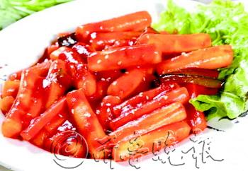 食材:年糕、洋葱、胡萝卜、泡菜、盐、韩式辣酱、植物油。